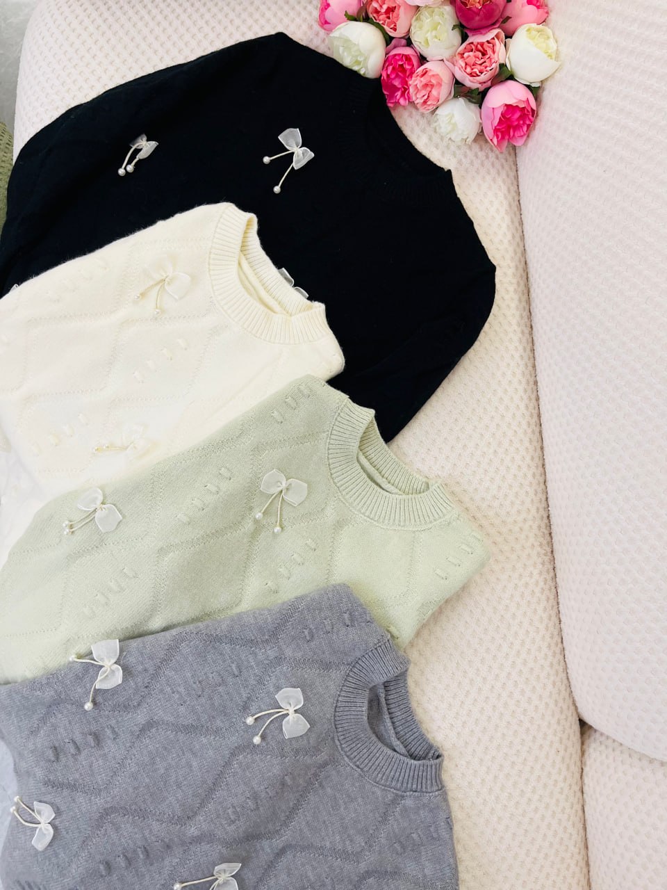 بافت دخترانه جلو پاپیون مروارید