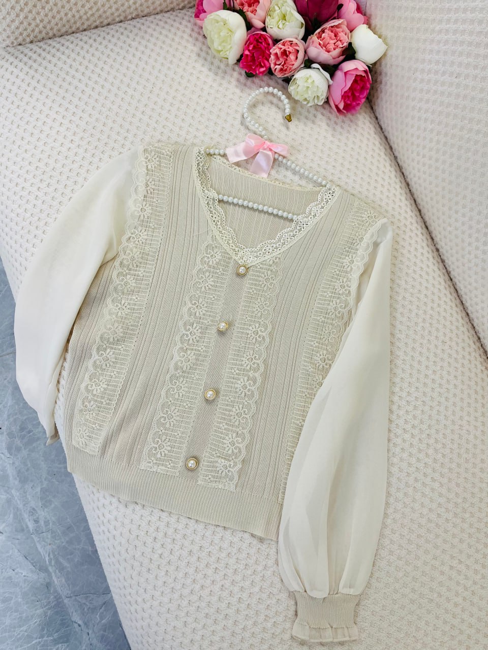 کاردیگن بافت ظریف جلو مرواریدی